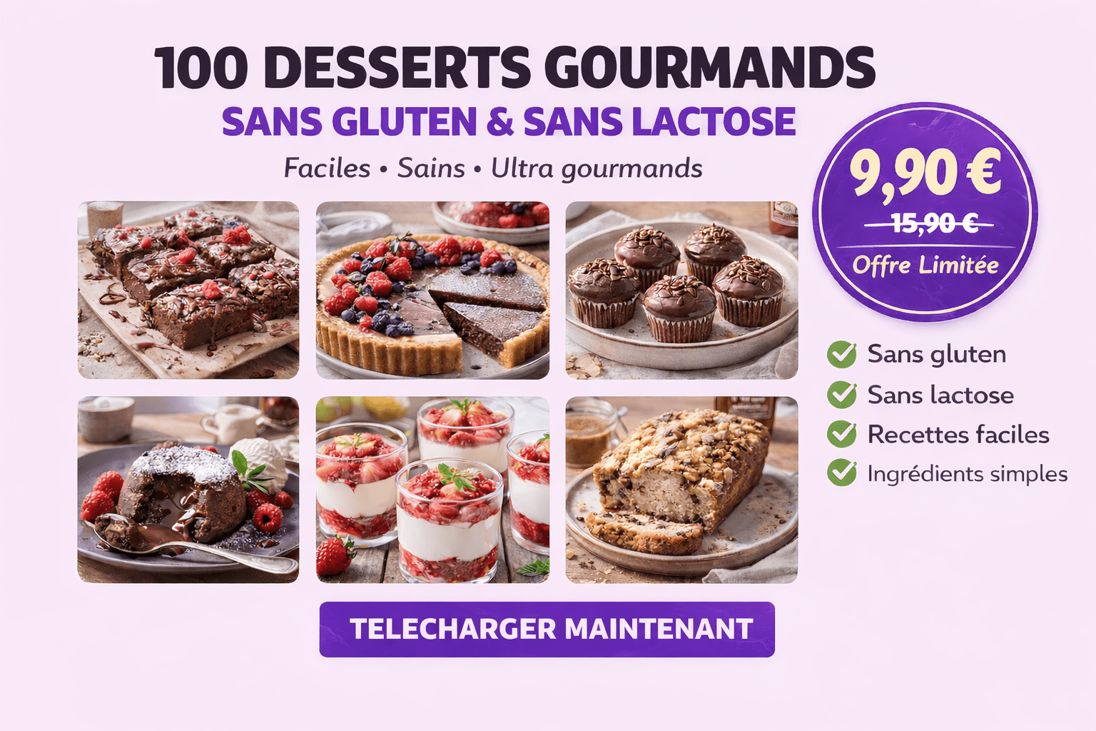 Avec cet Ebook PDF complet, je vous prouve qu’il est possible de réaliser des Mousse au Chocolat onctueuses, des Tartes aux pommes croustillantes et des Cookies fondants, le tout sans une trace de gluten ni de lactose.
